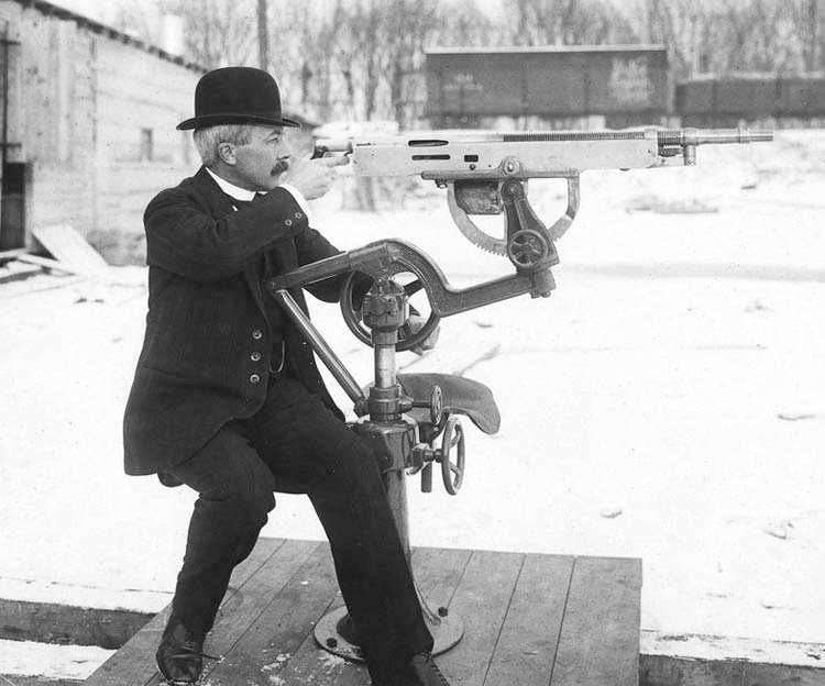La nota se refiere al armero Hiram Maxim, creador de la famosa y más «masiva» ametralladora de posición de la historia militar, la «Maxim-Vickers». Como vemos, la competencia en el mercado estadounidense de inventos y producción de armas automáticas a finales del siglo XIX era excepcionalmente aguda. Las diferentes empresas de armas avanzaban en sus desarrollos literalmente «codo con codo», y la ventaja en el patentamiento no superaba unas pocas semanas, y a veces incluso días.