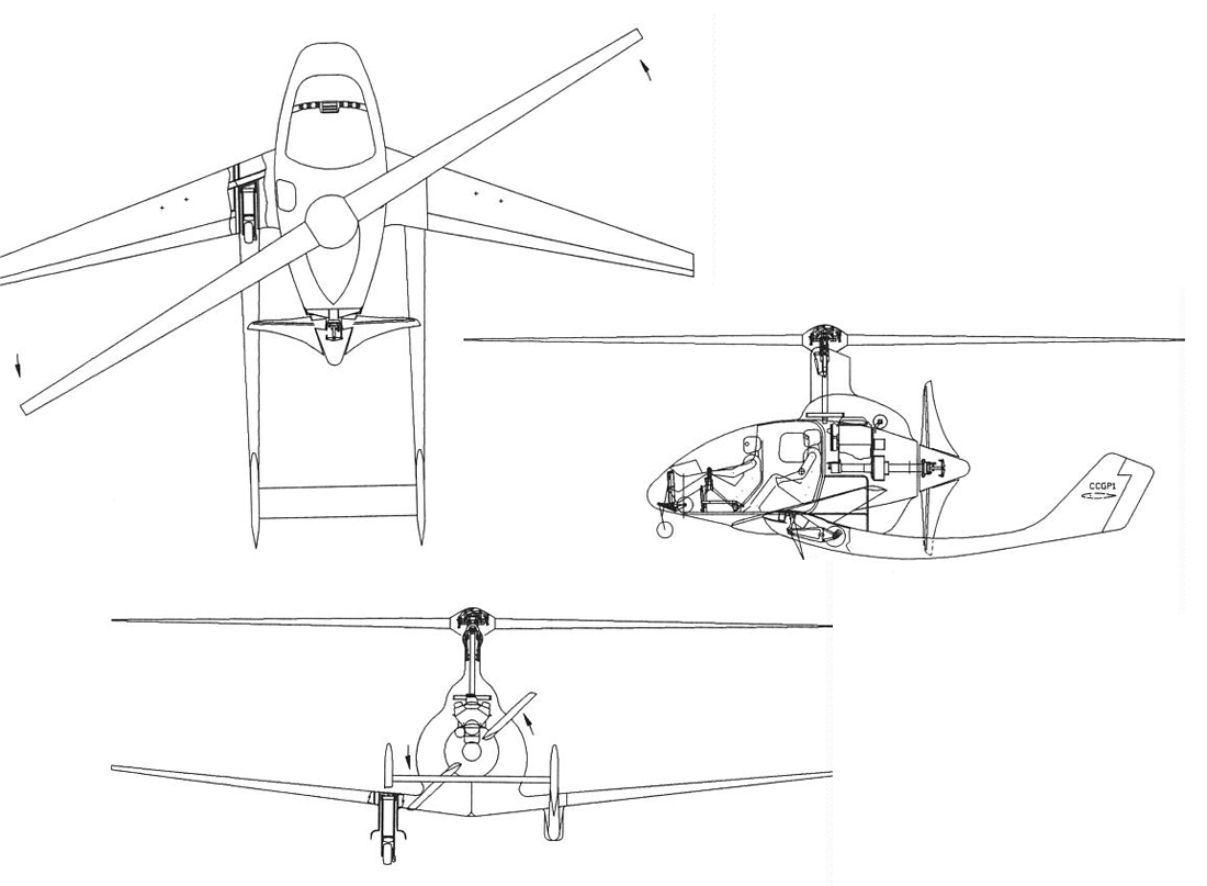 En este aparato, el rotor proporciona sustentación en el despegue, a bajas velocidades y en el aterrizaje. A velocidades de crucero, el rotor está completamente descargado, y la sustentación la genera un ala pequeña y rígida. Los compañeros probaron su modelo instalándolo en una barra de 3 metros en la parte delantera de un jeep. Este «túnel de viento de ultra bajo presupuesto» estaba, sin embargo, equipado con numerosos sensores, cuyos datos eran bastante fiables y precisos.
