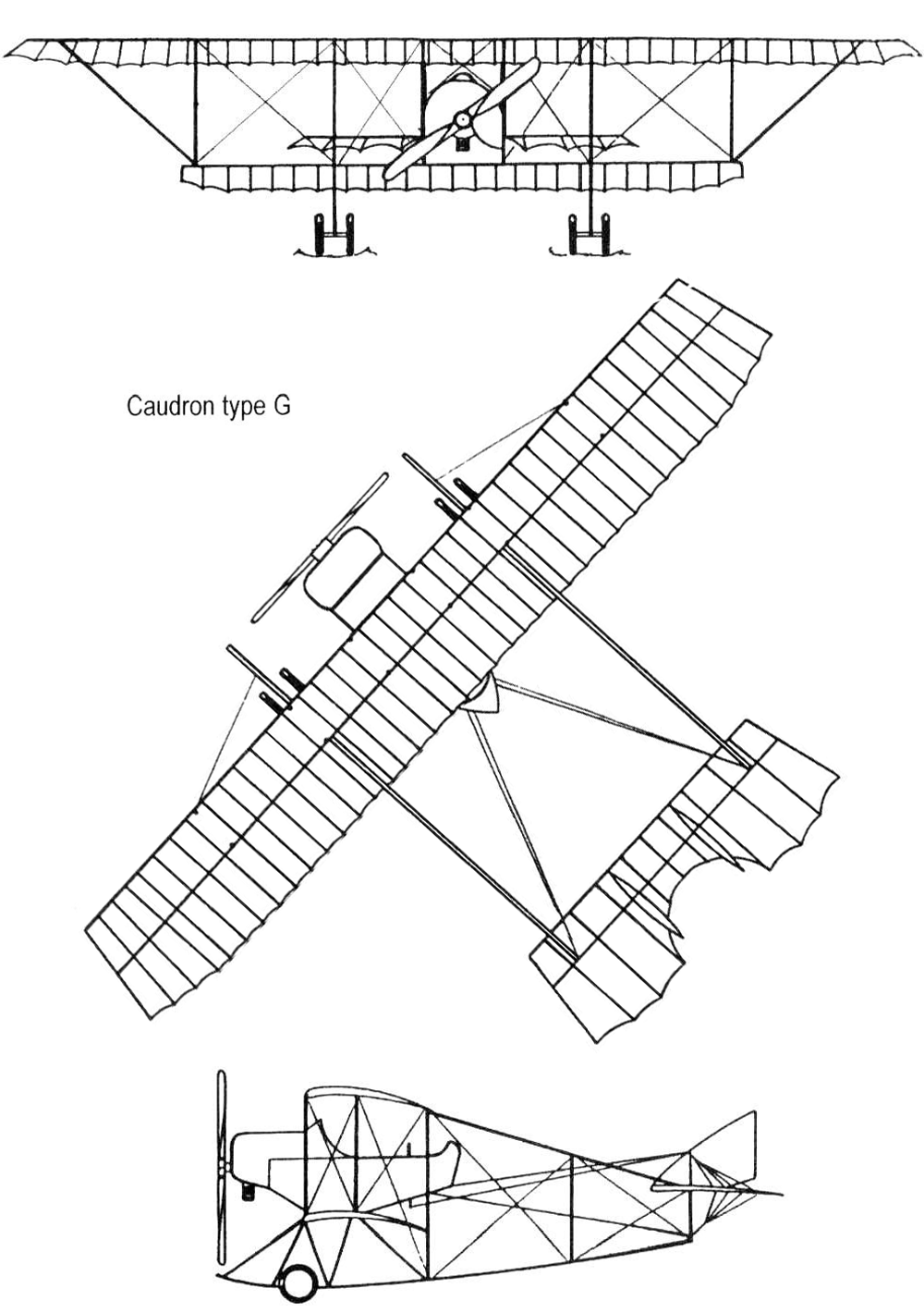 En 1913, los hermanos René y Gaston Caudron desarrollaron el primer avión auxiliar de la familia G. Designado como Caudron G, este pequeño avión era un biplano biplaza de doble montante, equipado con un motor Gnome de 80 CV. Además del tren de aterrizaje de ruedas convencional, el Caudron G también podía equiparse con dos flotadores.