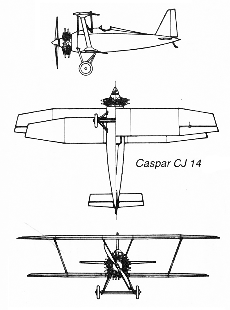 En 1924, Caspar-Werke AG desarrolló un proyecto de caza denominado CJ.14. Este avión era un biplano monoplaza de madera, propulsado por un motor Hispano-Suiza de 300 hp. Su armamento consistía en dos ametralladoras frontales de 7,92 mm con una munición de 500 cartuchos.