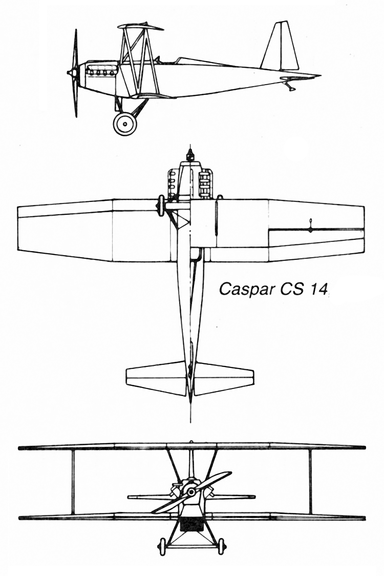 El mismo año, Dansk-Aero produjo otro caza diseñado por Caspar-Werke AG, conocido como CS.14. Esta aeronave representaba una modificación del CJ.14 a una variante biplaza, aunque algunas fuentes sugieren que fue un proyecto paralelo. Se equipó con un motor inglés Napier Lion IV de 450 hp.