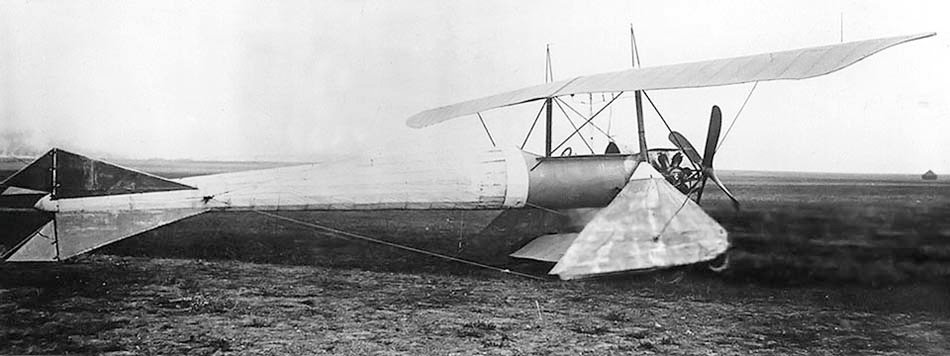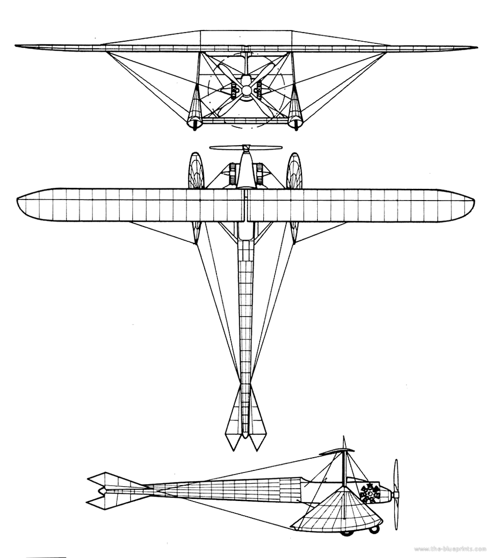 La construcción del fuselaje también era muy inusual, con soportes de tren de aterrizaje en tándem de cuatro ruedas en enormes carenados triangulares que recordaban faldas. El fuselaje estaba «suspendido» por cables entre las alas, y contaba con una cola en forma de X. El armazón estaba hecho de acero al níquel y revestido de lona; solo la parte delantera del fuselaje, cerca de la cabina, tenía un revestimiento de madera contrachapada curvada. El control de alabeo se lograba mediante la deformación de las puntas de las alas (warping).