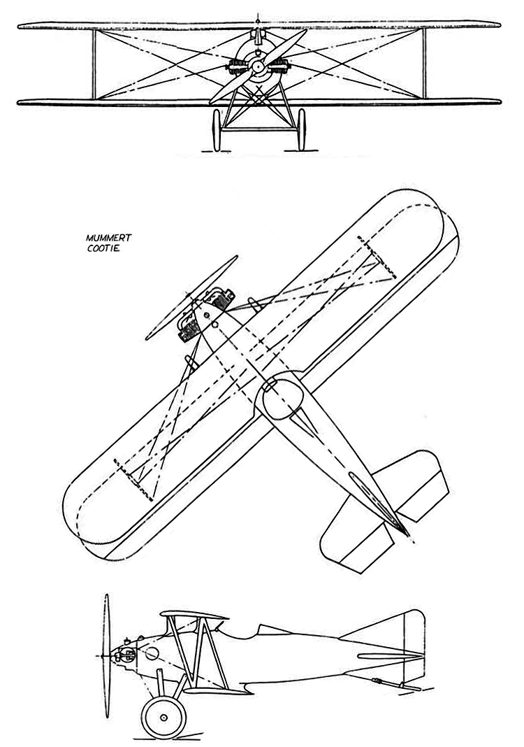 A principios de la década de 1920, el ingeniero de Curtiss Corp., Harvey Mummert, inició el desarrollo del pequeño y ligero avión Mummert Cootie. El 9 de julio de 1921, el avión, apodado Baby Vamp, realizó su primer vuelo. Era un biplano monoplaza de un solo puntal con un fuselaje monocasco, propulsado por un motor Lawrance N de 40 CV.
