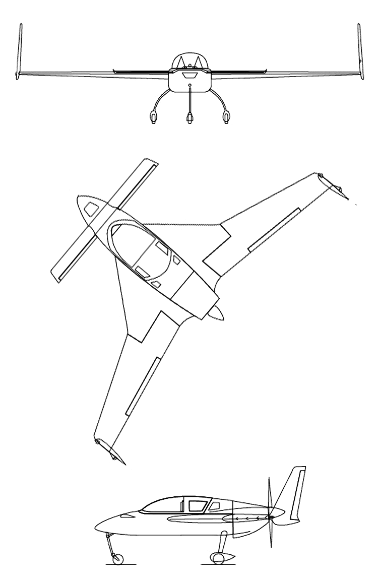 El avión fue impulsado por un motor Lycoming O-235-L2C de 120 caballos de fuerza. El fuselaje se construyó de manera innovadora, cortado de espuma con un hilo caliente, luego revestido con fibra de vidrio y resina epoxi; un método que sigue siendo, probablemente, el más económico y sencillo para la creación de fuselajes hasta el día de hoy.