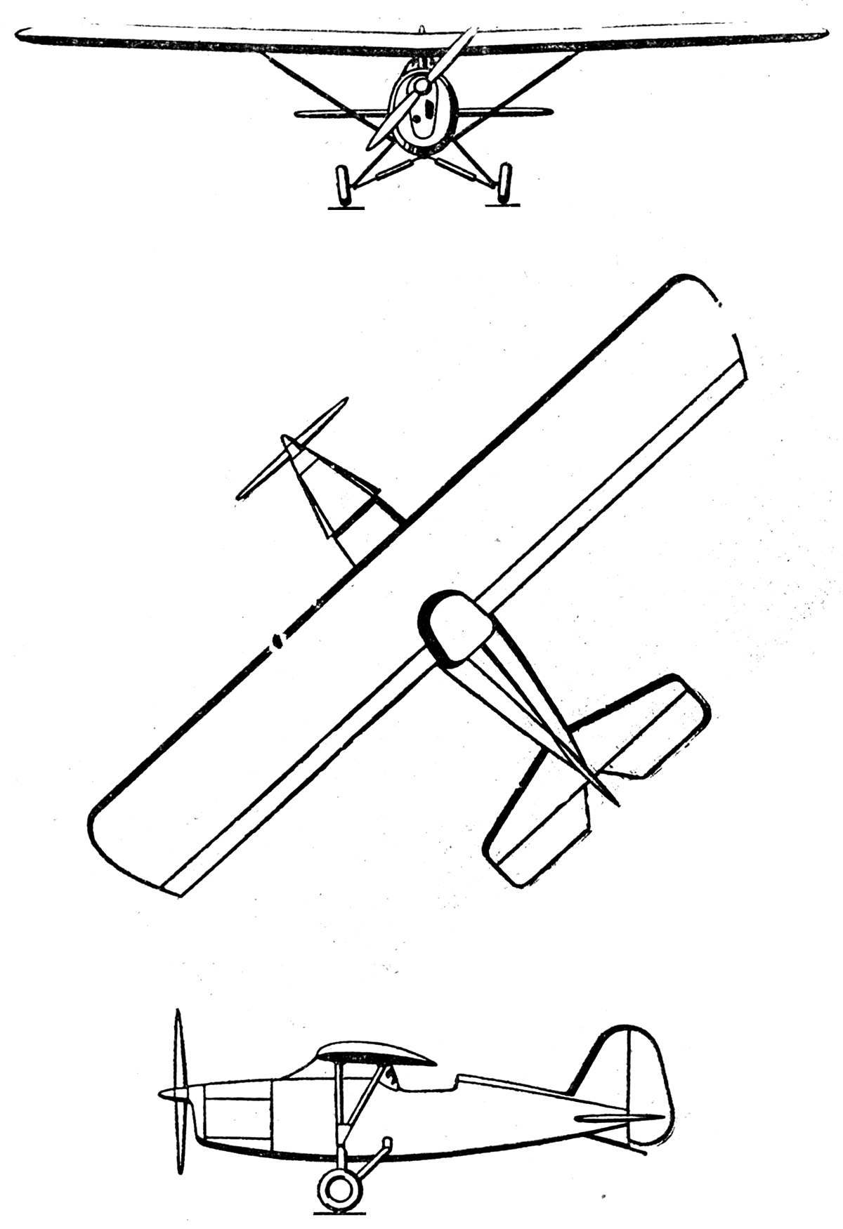 In August 1924, the Carmier T.10 (F-EESF) participated in the “Tour de France des avionettes” competition with a more powerful 45 hp Anzani engine and a Levasseur propeller. After several years of flight, Carmier replaced the engine with a 27 hp Ava 4A flat-four engine.
