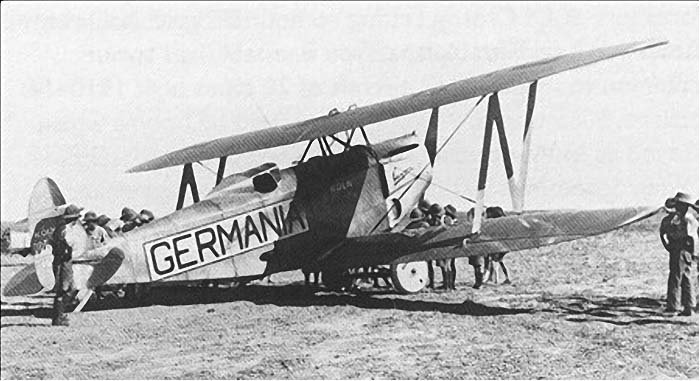 On September 20, pilot Otto Könnecke took off from an airfield in Cologne in the aircraft named “Germania.” The plan was to fly across Eastern Europe, India, and Japan to the USA. However, poor weather conditions and engine problems interrupted the flight over India. After repairs, it was decided not to continue the flight but to return to Cologne.