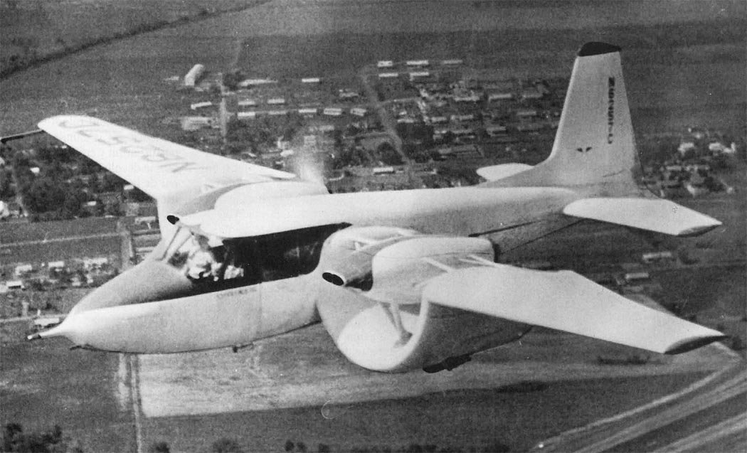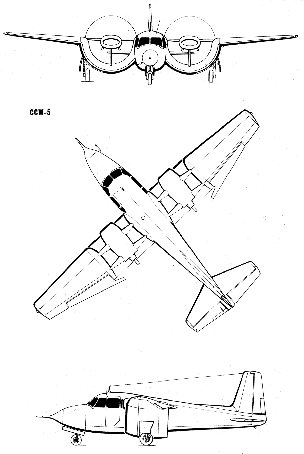 The CCW-5, the final model from the Custer Channel Wing family by American designer Willard R. Custer, made its maiden flight on July 13, 1953. This experimental aircraft was built using the fuselage and tail section of a Baumann Brigadier, a light twin-engine passenger plane powered by 225 hp Continental O-470 engines.