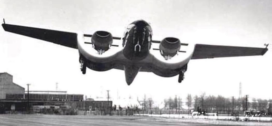 The effectiveness of lift generation in the semi-circular channel wings of this aircraft was significantly reduced. This was due to the incorporation of sizable traditional wing consoles, which alone could have provided flight for the aircraft even without the semi-annular sections.