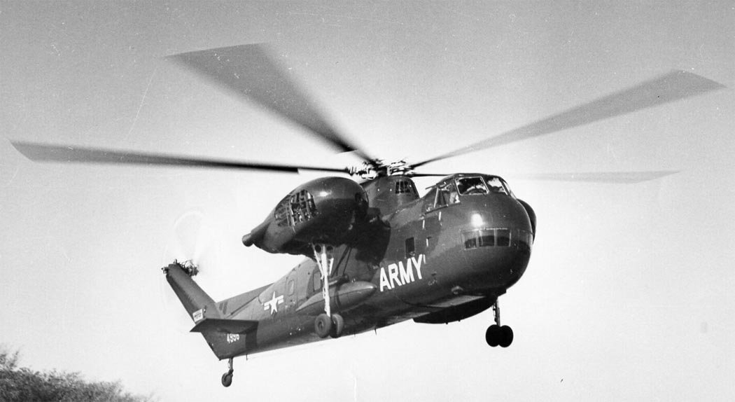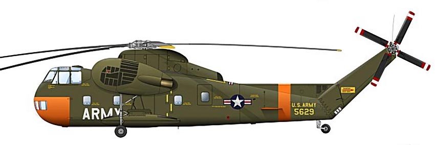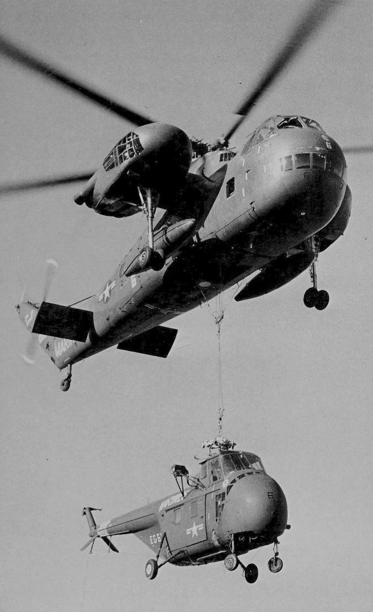 In a record flight in November 1956, an Army H-37A lifted a load of 6000 kg to an altitude of 2000 m and 5000 kg to 3688 m. Its powerful engines and good aerodynamics also allowed it to set an absolute speed record of 262 km/h at that time—an astonishing combination that made it both the heaviest-lift and fastest helicopter.