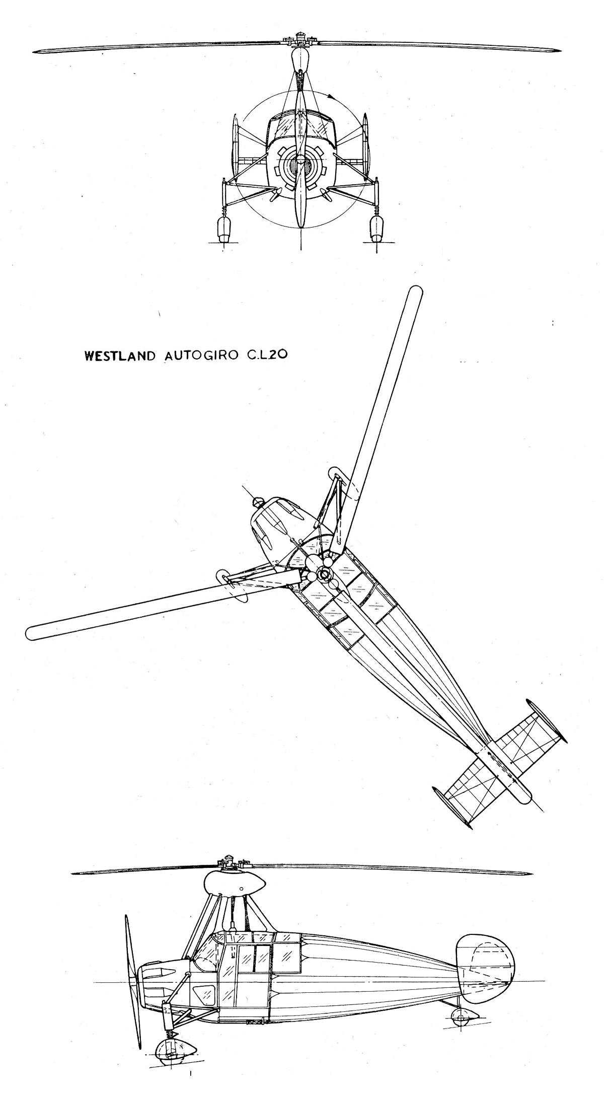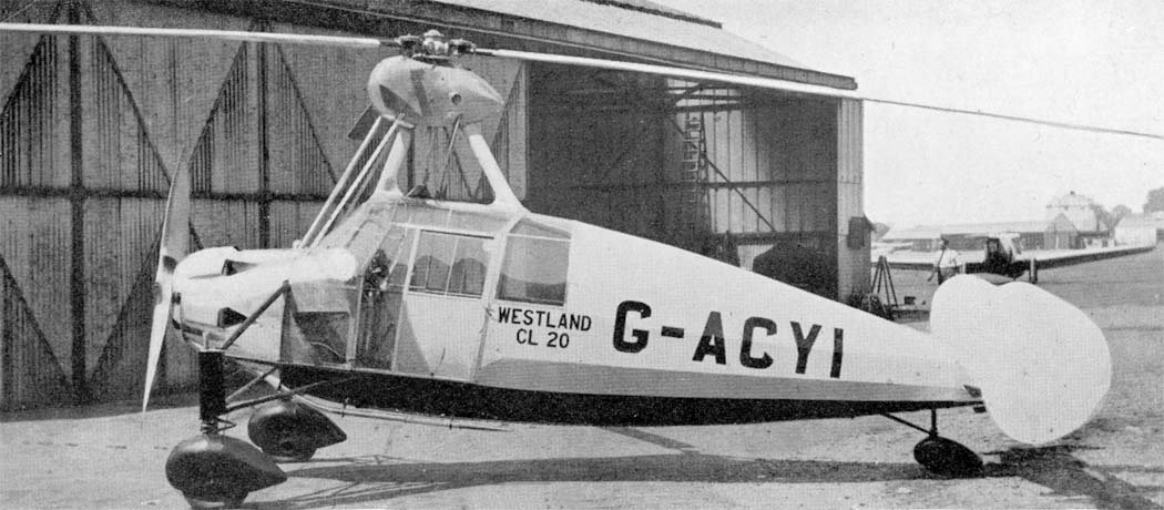 The prototype of the new autogiro, designated CL.20, was completed in December 1934 and tested in early the following year. After several flights, the autogiro was disassembled and transported to the Cierva testing center at Hanworth Airfield.