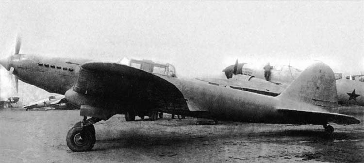 Armor thickness varied from 4 to 7 mm based on ballistic analysis and structural loads, with its streamlined shape enhancing protection at the design attack speeds of 350-400 km/h. The total armor weight was 700 kg. The rear fuselage was a wooden monocoque, while the wings and stabilizer were all-metal duralumin. The landing gear retracted backward into fairings, designed for easier belly landings.