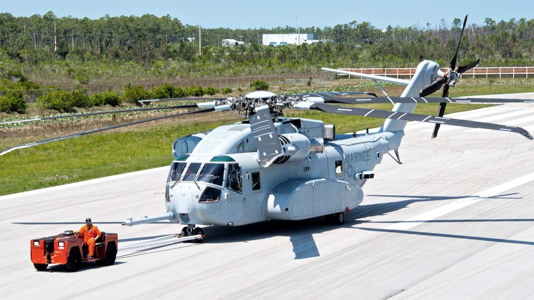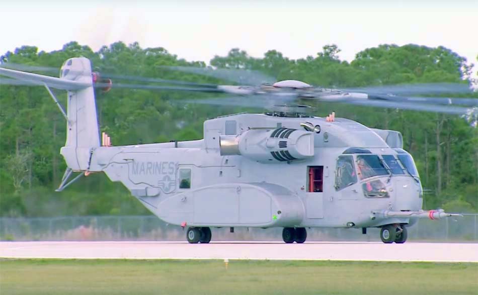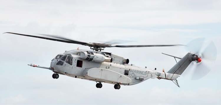 The helicopter can carry a load of up to 27,000 pounds (12.25 tons) over a distance of more than 203 km in hot climatic conditions. Advantages of the CH-53K helicopter include an advanced glass cockpit, fly-by-wire control systems, and 4th-generation main rotor blades with negative blade profile deflection at the tip.