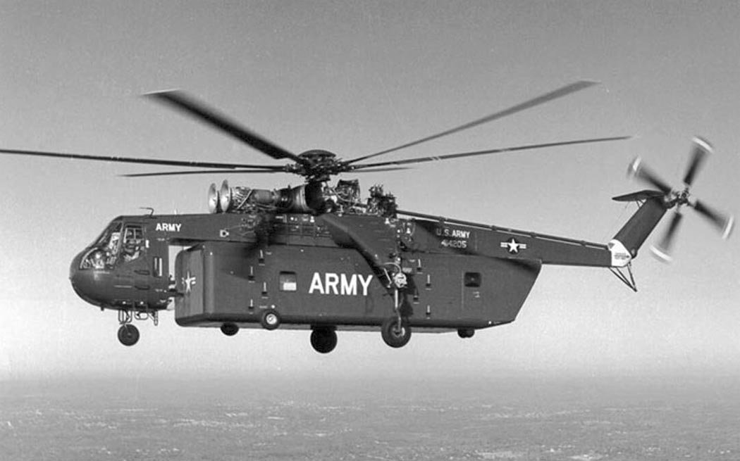 Construction of the new S-64 was completed in April 1962, and it made its first flight on May 9. The helicopter was designed to carry 9000 kg over a distance of 85 km, or 6000 kg over 340 km, achieving a weight efficiency of up to 54%.
