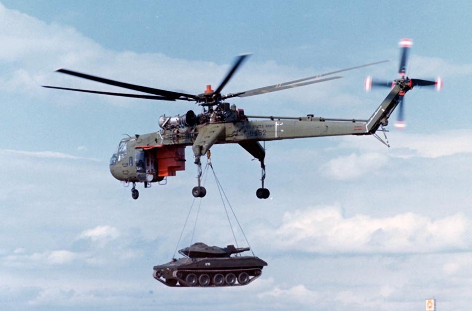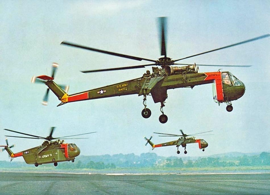 The Vietnam War demanded huge appropriations for the construction of a large number of light aircraft. There were also no civilian customers capable of supporting the construction of giant “flying cranes.” Moreover, in the 1960s, the “coupling” of two S-64s was mastered for transporting loads significantly exceeding the weight and dimensions transportable by a single “crane.” Two S-64s effortlessly lifted 20-ton loads.