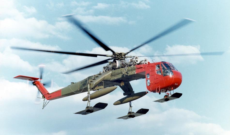 The S-64A is the civil variant of the CH-54A helicopter; it received its airworthiness certificate in 1969 for transporting external loads of up to 10160kg.