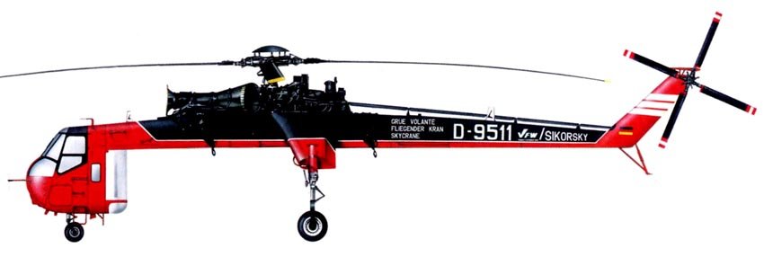 The CH-54A was the base helicopter with turboshaft engines of 3310kW each and a maximum takeoff weight of 19050kg. In 1965, three international records were set on this helicopter, including lifting a load of 1000kg to a height of 8943m.