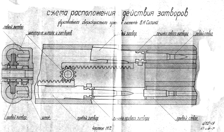 However, V.I. Silin, in his prototype submitted for testing in 1937, managed to achieve 3500 rounds/min. At that time, there were no analogues of the TsKVSV-19 anywhere in the world. Furthermore, it was considered as a kind of universal machine gun, both for aviation use and as a short-range anti-aircraft weapon.