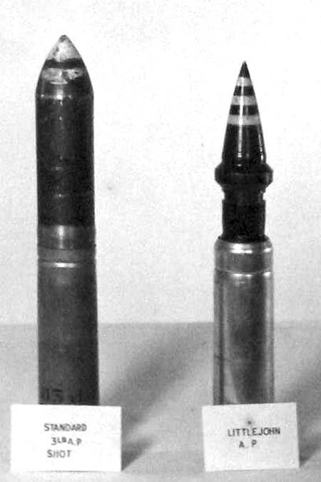 | Projectile mass, g | 1130 (armor-piercing Mk.I) 1360 (armor-piercing Mk.II) 567 (sub-caliber for Little John tapered adapter) |