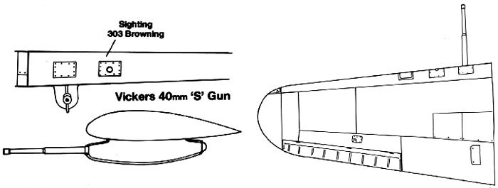 Subsequently, work was moved to Brooklands, where the new gun was installed on a prototype Wellington II aircraft (serial L4250). The Class S was mounted in a large mushroom-shaped turret. Vickers also began work on a fighter to specification F.22/39, which was to be equipped with a limited-traverse nose-mounted S gun.